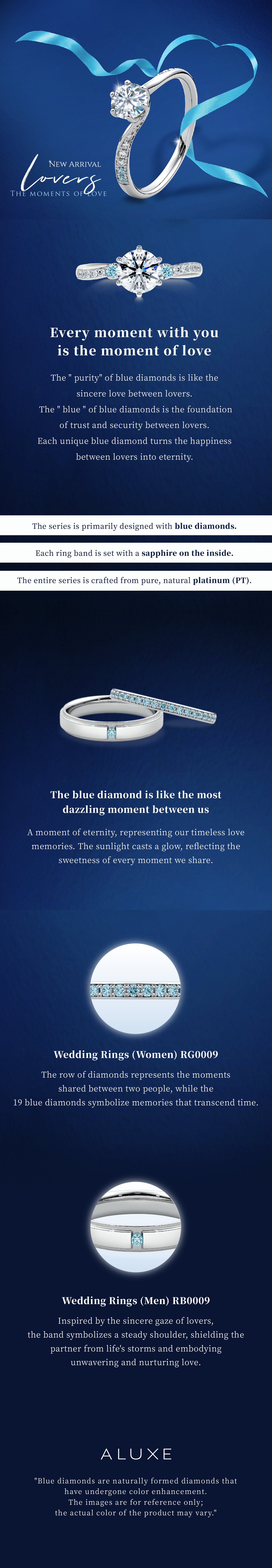 The blue diamond captures our happiness, making a moment eternal. The row of diamonds represents the countless love memories we share over time. Worn every day, it shines with infinite beauty.