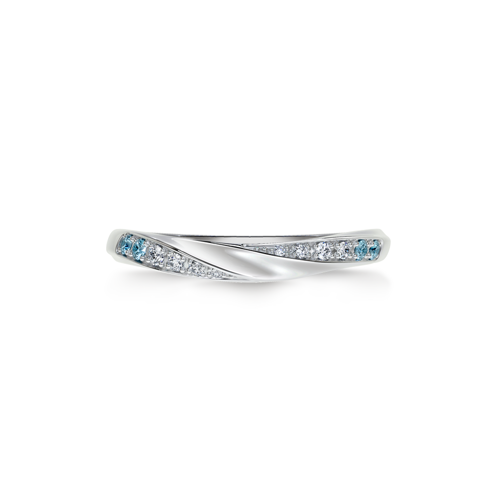 The sparkling diamond shines brightly, extending infinitely, adding a touch of brilliance to every day of love. With blue diamonds as embellishments, it bears witness to the unwavering love of the two. The curved design adds a soft touch to the ring, and the delicate body of the ring with diamonds on both sides adds a touch of radiance to the softness. * This style comes with one blue sapphire (non-replaceable).